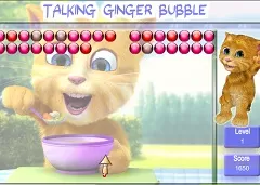 We have for you another new and beautiful online game, this time a game in which you need to use your logical skills and have fun while you are playing with Talking Ginger. The game that we have to offer is a beautiful bubble type of game in which we are sure that you will have alot of fun playing with us. Ginger is one of your favourite Talking Friends and we wnat you to have games with all of them, so everytime we have the possibility, we offer you a new game with one of them. This new game is with Ginger, a game in which we invite you to use your mind and try to bget the highest score possible. This game is easy to operate, extremely fun, and requires no special skills to play, only you and the desire to have fun with Ginger.In order to play this new game you need to blast as many bubbles as possible, the more you pop, the higher your score is, but you must not let the bubbles touch the ground as this will end your game and you will have to start all over again from zero points. The only way to pop bubbles is to get 3 or more consecutive bubbles with the same color lined up and you do so by using the arrow that will shot your ball. Ginger will watch over every move you make and he is sure that you will succed getting pass every level of the game!