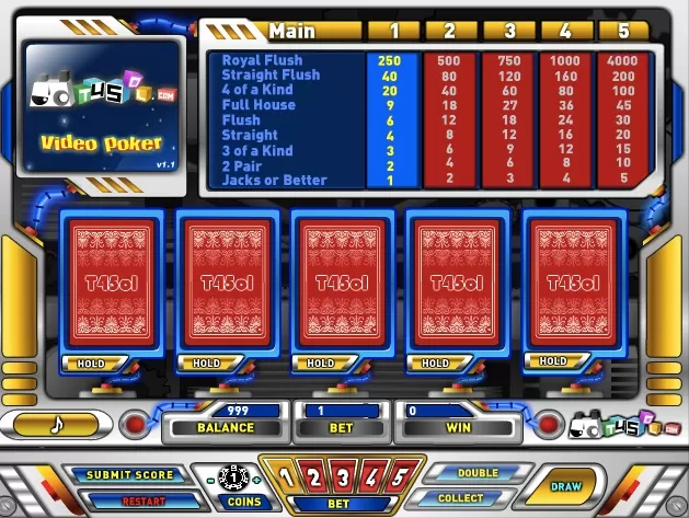 Today, here on games-kids.com we have for you one of the most interesting and fun games from the Slots games category, in which you will have to be very careful, because you will see that this will be a very different Slots game, in which you will not have to have different rows with pictures that are the same to gain points, because you will see that in this game you will have to play an electronic poker game, and so you will have to make sure that you will gain points, you will have to show that you will see that it will not be easy to have the best hand in this game. Only if you are very good at poker you will have the chance to play a lot of interesting and fun games, we are sure that if you think your every hand as best as you can, we are sure that you will make many points and so we are sure that more interesting and fun games from the Slots games category, in which we are sure that you will see more fun and interesting games that you will play with your friends. Have fun!