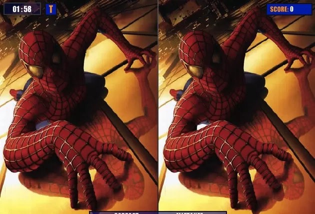 Welcome back dear friends here on games-kids.com, where we always try to find and bring for you the most interesting and the most exciting games from all your favourite games categories. Today, you will have the chance to play a new interesting and very fun game from the Spiderman games category, in which dear friends you will have to be very careful, because this new game is a differences game, and we are sure that if you do as we say, you will be able to gain points in this game. You will have to be very careful, because there are a lot of differences between the pictures that we have for you today, and you will have to find them as fast as you can, so you will be able to gain points and so become the best player of this new Spiderman games category game. Have fun!