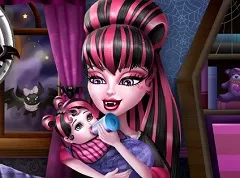 We go to the next game for today and bring you Draculaura the most popular character from Monster High. This new game that we have for you is a caring game, a game in which you get to see Draculaura as a grown women with a family, not as a teenager concerned about her make up. The day has come for Draculaura to be a mother and she is doing just fine with her new born cute baby. In the night the baby is waking up because it is hungry and Draculaura invites you to join her and give a helping hand so she can go faster to sleep, because tomorrow is a busy say for her. First of all you will help Draculaura entertain her little baby, feed him and eventually make him fall asleep. You will get the necessary instruction so that you can take care of the baby as needed. After the baby is asleep you have to decorate his room as you like, choosing whatever you want from de decoration offered. Draculaura is eager to see how will you manage with her baby, knowing that you will have fun!