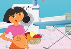 You all know Dora kids, she is a sweet little girl just like you who loves having fun, exploring the beautiful world she lives in and do all kind of interesting activities which would allow her to learn about new things all the time. But in this particular Dora game this sweet little girl has grown, and now she is a beautiful woman who is pregnant and is waiting to have a little girl that maybe will be just like her, adventureous and energetic. But that is not important right now, the important thing is that even if Dora is pregnant and maybe she would like to sleep more and relax more often, she still has to do a lot of housework which normaly wouldn’t bother her because she is a very organized woman, but now she is tired and her pregnant belly is realy big. That’s why she need your help in this fun Dora game, because we know you are her fan and you wouldn’t want to upset her, so we hope you want to help her do her job, because it will be fun, you’ll see, we guarantee it. So in this new Dora game all you have to do is help her wash some clothes and then iron them, even if you maybe did this in the real world and you didn’t like it, it will be different here with Dora, and you’ll it’s not difficult at all.All you have to do is follow the arrows that show you exactly what you have to do. Good luck!