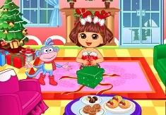 Welcome to our new Dora game where you can play with this lovely girl you just can’t wait to show you how a Christmas day is in her family, in her house. We told you that Dora loves Christmas very much, that is her favourite holiday and that’s why we offer you so many games in which is Christmas for Dora, these are the games she wants to play now so we should make her happy, at least that is your mission in this funny game. So Dora is a little bit nervous, but very excited, because she and her good friend are responsible of taking care of the house, and especially of the living room for it to be perfect for the guest that are yet to come. On Christmas Eve, there is a tradition in Dora’s family that they welcome in their house all their good friends and their entire family and so everything has to be ready for this big celebration, because this little girl is very enthusiastic about this evening and she wants your help to prepare everything. Good luck!