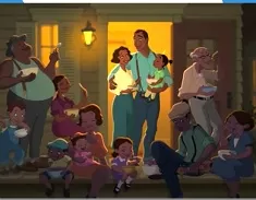 Come dear kids and check out this super cute game in which you are going to have a good time, like always, and that is very important for us, because we are here in order to make sure that you have a good time and that means bringing you the best games and give you the chance to play with the cutest and of course the friendliest characters. So come dear kids and check out this brand new game in which you have the chance to play with the princess and the frog, withTiana of course who is very happy to be here. She has brought you a beautiful puzzle in which you will met her, her family and all of their neighbors who are all eating together and having a good time. Good luck on the puzzle. Good luck!