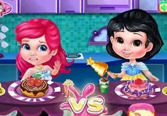 Come dear kids and check out this super cute game right here onn our site, we are sure you are going to have a very good time here on our site because you get to play with some characters who are more than happyto be here and they simply can't wait to play with you over and over again, so all you need to do is just access the games you get to play because we are sure you are going to enjoy them. This righ there is a cute game in which you get to play with baby Ariel and baby Snow White and they are having a cooking contest, you have to help them decorate their doughnuts and of course that in the end of the game one of them will win the contest, but you have to pay attention to both of you. Good luck!