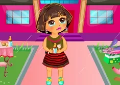 Well here it is a new game with Dora the Explorer when you have once again the chance to play with her, to get to know her better and to spend some time together as every normal friends do sometimes. In this game, Dora’s day starts very good, she is outside playing in the sun, and you kids are there too helping her with the toys and participating in the fun activities, when unfortunately it starts raining. That is a very bad news because Dora gets all wet and her clothes too and of course it is much colder outside now so she has tu rush back inside in the house. But it’s not a big deal, Dora has you on her side so she asks you to help her dry out and then of course put on new clothes and her rain coat and the fun outside can start again.Soon the rain stops and Dora is playing still in her backyard, showing you how to help her and which toy to give her, when she gets all dirty because she is not paying attention to the way she is playing. That’s not a big problem either, we are sure that you are willing to help her clean up. Good luck!
