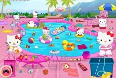 Hello Kitty is one of the most popular characters ever and we hope that her presence will make you curious about this game right here in which your mission is to help her clean the swimming pool. The story of the game is that Hello Kitty is throwing one of the first parties of the year in this fun girl game, well of this summer and she wants a pool party with all of her friends but since she didn’t use the pool from last year it is messy and she needs your help to clean it and prepare it for the party, that’s your task in this cleaning game. Cleaning won’t be easy because you are not getting many instructions but we are sure that won’t stop you and Hello Kitty, just pick up all the garbage and throw it out, put all the things in their place and so on and if you get stuck and don’t know what to do anymore next, you have a hint button you can press which will show you what the final result should look like in this swimming pool cleaning. Good luck!