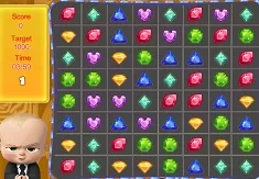 Boss Baby is waiting for you in this awesome game and beside the fact that he just knows this is the perfect bejeweled game for each and everyone of you, he is sure that together you are going to have a fun time. So come and try out this game in which, as you can see, Boss Baby is literally the boss of a bejeweled game in which we hope you know what your task is. But don't worry if not because we are sure you will learn it very quickly and that you will be very good at it. You just have to pair three or more of the same colored jewels to make them disappear and when they do that they give you points and in each level you have a target. When you reach that target with the moves you have in the level, then you have won it and you can go to the next level. Good luck!