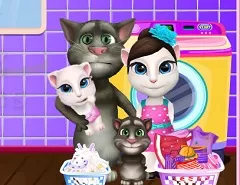 Let us move further with the games for today and offer you more new and beautiful online games, more new games in which we are sure that you will enjoy playing with us and your favourite characters . This new game that w ehave for you next is a very beautiful caring and skill game with Talking Tom, his wife Angela and their two kids baby Tom and Angela. They have decided to start sharing the responsabilities so they could learn how to respect them. Your friends has decided to do together the house work and now they are at the laundry part, where they want you to join them and give a hand. You will have to use all the instructions that your friends have to offer to you, so you can help them wash all the clothes. You will have to help them by sortating the white clothes from the colored ones and wash them separately. We invite you to join us and play this new game that we have to offer with your friends from the Talking Friends series!