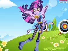 We have told you before that the Canterlot High Equestria Girls are really very lucky because they have the chance to play all kind of games and participate in all kind of activities beside school and that is super fun and that is why Twilight Sparkle is here in this very cute game, because she is ready for her archery session. This time the Canterlot High school has organized some archery lessons for the pony-girls who are curious of trying it out and of course Twilight Sparkle is among the firsts to do so, but she needs your help so come and dress up Twilight Sparkle in archery style so she would be ready for the lesson. Good luck!