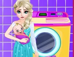 Play free Elsa and her Baby Washing Clothes - Frozen Games