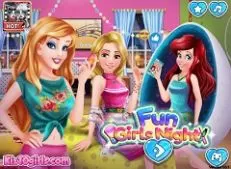 Three Disney princesses are coming today here on games-kids.com with a new dress up challenge. Today dear friends we are bringing a very special Princess games category game, in which you will have to be very creative and very careful, because you can see that the Sleeping Beauty, Rapunzel and the Little Mermaid are coming today here on our website and they want a total makeover in ordeto to have a fun girls night at the apartament. It's not going to be easy at all, but Rapunzel, Ariel and Aurora are going to need your help to change their style, and for that each and every one of the Disney princesses will going to need special make up and fashion clothes and hairstyle to wear at this fun girls night, and you can see that you will be able to have a great time, and that you can see how the princesses will return with more dress up and makeover games for you. Have fun!