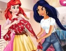 You can find today dear friends a new online Princess games category game, in which you are going to meet with Jasmine and Ariel, two Disney princesses that always want to be fashion and look good together. Today dear friends, you have to make sure that you can gain a lot of fashion experience with the Aladdin and Little Mermaid princesses. It's not going to be easy at all, because dear friends you have to make sure that you can help the Disney princesses win a little contest in this shopping rivalry game, because dear friends you can see that you will have to make sure that you can help Ariel and Jasmine to have the most beautiful, modern and fashion clothes, accessories and even hairstyles from the mall. We are sure that you will do the best outfits for the princesses, and you can see that they will return with more dress up and makeover challenges here on our website. Have fun!