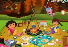 Dora and Diego are brothers and they love spending time with each other because they share the same interests and hobbies and that means they can realy have fun together and we are going to try to bring you games with them, so you would have the chance to know them better and to see how amazing they are, separetly but together too. In this fun new game with Dora and Diego, they went camping together with Dora’s best friend, little Boots, and they had an amazing time together, they laughed, they played, they ate very well delicious meals, and now it came the time to clean it all up. The two kids are still realy full from all the tasty food they ate so they are asking for your favor to help them clean it up. We are sure that you kids will find it realy fun, because it is a game, you have to pick everything up and know where to put it. Good luck!