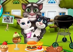 We are more than happy to offer you the next new game for today, another game in which we invite you to join us and have a lot of fun. This new game that we have in mind for you is a beautiful caring game in which the main character is Talking Tom, your friend from the Talking friends serie and his two little kids, little talking Tom and little talking Angela. In this new game, Tom and his family have decided to have a nice Sunday cooking something on the grill and eat it outside in the garden. He expects his other friends to come in visit and join them to the barbeque and that is why he would like you to give him a helping hand and choose what they should eat today. Also he wants you to arrange the table and than wait for the guest to arrive. Tom is eager to see his friends again and spend some time, also with his little kids after a whole week of work. Join them and have fun too, here on the best online free games website ever!