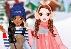 So you get to dress up your friend by choosing the best pants, or even dress, even though it is cold, you can choose the shoes, the jacket, maybe even the scarf and everything she needs, and you just need to be creative. Then you get to do her makeover and that won;t be an easy mission but you have all the make up products you need, foundation, eye shadow, mascara and lipstick. The hairstyle, the makeover and the outfit, for both girls, need to be perfect for winter. Good luck!