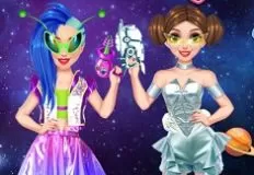 These magical Disney princesses can't wait to play with you and of course have a good time with you and we really hope you are going to be curious about playing with them once again because this Intergalactic Fashion Show is really a very cute new game in which the two girl friends are going to participate in the Intergalactic Fashion Show and they want to get ready together.