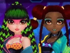 You have to use the MOUSE to play this new fashion challenge, in which the clothes, the makeup and the hairstyles are going to be amazing, because this dress-up game has a new Cyberpunk 2200 style, and you will see that there are going to be a lot of bright colors, a lot of interesting designs and see how beautiful the little girls that will wear our outfits will look.