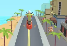 With the mouse if you play on PC, or with your finger if you play on a touchscreen device, you will swipe to the left and to the right in order to steer your scooter. The goal will be to avoid the trucks and cars in the traffic, but also the roadblock and various other obstacles that will be put in your way. If you crash into them, you will lose that level but of course then you can try it again.