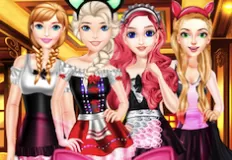 So this Maid Coffee shop that Elsa has opened even has a dress code for the waiters, so you kids get to dress up Elsa, who is of course the owner of the coffee shop, and you get to choose the perfect hairstyle and, of course, do her makeover, and you get to do the same for her sister, Anna, and their friends Ariel and of course Rapunzel. Good luck!