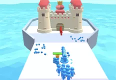 Can you emerge victorious in Castel War 3D online? In this hypercasual running and fighting game, you'll guide your blue stickman general using the mouse. Your primary objective is to collect blue bubbles scattered across the battlefield. Once collected, these bubbles are used to spawn soldiers on the blue tile. The more bubbles you gather, the larger your military force becomes.