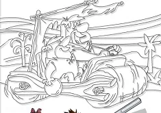 We present to you, kids, another one of our newest category, the one with the Flinstone family, but we are not going to present to you the whole family, not today. Today, you are going to meet only with Fred Flinstone, the head of the Flinstone family, and his best friend and close neighbour, Barney. Fred and Barney are doing everything together and they are together, all the time, even though sometimes they don't get along very well, but they are best friends and they get over whatever misunderstanding. Their favorite activity and hobby is bowling, this is how they choose to relax after a hard day at work. In this game we've uploaded today, here, on games-kids.com, you will receive an image with Fred and Barney, in Fred's pre-historic car. It looks like they are going to play some bowling, because Barney's holding his bowling pin in his hands, and they look pretty excited. What you will have to do is to use your creativity and imagination and color this blank image, as you wish. You can either use the exact colors they have in the cartoons, or you can choose whatever you want. Have fun kids!