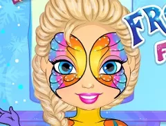 Are you ready for the next game for today? Well our administrative team has decided that now is the right moment for the next game, a new and beautiful caring game in which you will have as main character the beautiful baby Elsa. We know how much you love the games with the princesses from the Frozen movie and that is why we try every day to offer you a new game with one of your favourit princesses. The new game that we have for you is a face paint and body art game in which Elsa wants you to join her and choose a model from the four that the game has to offer in order to paint her face and entire body in that way. The game will offer you little instructions, because it is basically like a coloring game, only that you have to draw the shape of the animal face and after that to color it. We are sure that you will have great fun playing this new game that we have for you,so we invite you to join us and have fun, here on games-kids.com!