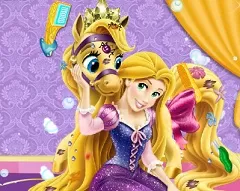 we are always looking to ofer you the best online games, some of the best games that we can find and we hope that you enjoy playing them as much as we enjoy them. This new and fun online game that we have decided to offer to you next is a fun caring game in which the main character is princess Rapunzel, the game is a messy type of game in which your friend needs your help. Rapunzel's pony got really messy after a whole day of fun with the other animals and now she needs to bath. Rapunzel likes to keep her palace pets cleaned so if they had alot of fun and end up reallymessy she cleans them up. In this new and fun game that we have for you, you need to join princess Rapunzel and help her clean her pony. You will get all the instructions neccesary to wash him and after that you will have to arrage him. We are sure that you will have alot of fun playing this new and fun games that we have for you, so have fun, here on games-kids.com!