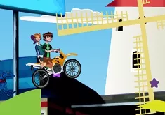 Our team from games-kids.com thought that this game is the perfect game for you boys, if you are fans of Ben 10, the adolescent superhero, who can transform himself into 10 different aliens. You could say that he has 10 different personalities, since he can transfomr into all those aliens, but the bottom line is that he always fights for the good side, for the humans, and usually, he has to go against other evil aliens, who want to destroy the earth. But, in this game, you won't be playing an adventure game in which you will have to help Ben destroy his enemies, on the contrary, you will play a more relaxing game, a game in which you will join Ben and his cousin on a bike ride. Ben has gone with his parents to his grandparents, where his cousing lives, and they wanted to spend this day by riding the bike. What you have to do, in order to play this game, is to help Ben avoid all the obstacles he will find on the road, collect the stars and make sure that the robot dog doesn't catch you. Good luck!