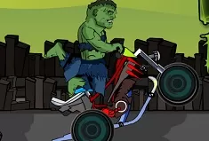 If you like boys games in which you have the chance to drive all kind of super bikes, well we think you will just adore this new game in which you have the possibility to play with one of the Avengers, with the Incredible Hulk, as you can see from the title of the game, and this is an extraordinary one because you don't see Hulk very often on a bike because he needs a very large one, especially made for him. But now he does have one and he is just ready to do all kind of tricks to amaze everybody , even himself, but he has to admit that he is not realy an expert in bike riding, he is just very brave to try it, and that's why he needs your help in driving this super bike in this new game with superheroes. You will see that is not a very easy game because the tracks are filled with all kind of obstacles and if you don't pay attention you could turn over and crash. Good luck!