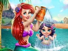 Next we have for you a new and amazing online game in which we invite you to joi n us and enjoy. This new and fun game that our administrative team has decided to offer to you is a very fun caring game in which the main character is princess Ariel, the little mermaid from Disney. The game is a very fun washing game in which Ariel invites you to join her and help wash her sweet little baby girl. The game is actually a very fun caring game in which princess Ariel has to wash her little baby girl and wants to make it a fun activity so she needs a little help to mentain her little girl happy. You will have all the solutions and showers offered and you will be able to choose form them the ones that you love in order to bath the little princess mermaid of Ariel. In this new and fun online game that we have for you Ariel has decided to offer you a new and fun online game in which we are more than sure that you will have a lot of fun. Join Ariel and her baby mermaid and have fun while playing this new game!