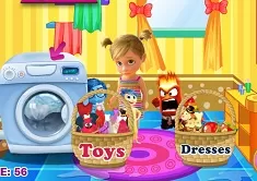 Riley is not very happy in this little game, we could say that, but if you are there with her it is sure than she will be a little more happy and she would start working with a better mood. This is a washing day kind of game and Riley, even if she still is a little girl, has to wash all her dresses and toys, her mother wants to make her responsible and teach her how to take care of her stuff and this is a great way to do that. Of course that Riley is not very happy, but if you, her friend, would help her the activity would become a little more fun, and you will see that even her feelings are there to make the game even more fun, but of course you kids are the only ones who can see them, it would be awkward if Riley could see them. Good luck!