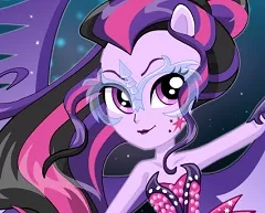 We are back with another new and fun game to offer, a new game in which this time the main character is Midnight Sparkle, one of the girls from Equestria. We have promised you more and more games with the Equestria girls, so here we are ready to make you happy and offer you more of those type of games. This new game is a fun game in which you have to use your taste in fashion and dress up the character. Twilight is a student of Crystal Prep, who is investigating strange energy readings from Canterlot High. However, during her time there, she gradually begins to absorb Equestrian magic from the Humane Five, and is eventually forced to unleash the magic, corrupting her and transforming her into Midnight Sparkle. In this new and fun game that we have for you, you are invited to use your tastes and choose form the clothing objects and accessories that are offered to you by the game. We are sure that you will have a lot of fun while you play it, so do not hesitate to tell us your opinios!
