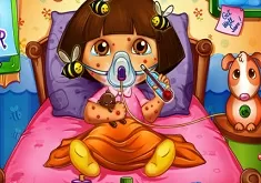 Dora is a very curious little girl and that is why she is always exploring the nature around her, she wants to know everything she can , she wants to learn and to find out something interesting and usefull everyday so that’s the reason she gets injured sometimes. It happens that she is so enthusiastic that she doesn’t pay attention and that is exactly what happened in this game too. She was in her backyard when she saw a bee hive and of course that being how she is, she couldn’t control her curiosity and she went to check it out. But unfortunately the bees didn’t like that at all and they stung her. That hurt Dora very much , she went to the doctor and now is your job kids to help her heal and of course to ease her pain, we are sure you are perfect for this job and you will like this doctor game because they are always interesting, just follow the instructions. Good luck!