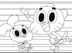 Anais and Gumball are brother and sister and even if they have their differences and they don’t always get along the way they should, they love eachother a lot, like any siblings do and should do, and they are happy and excited that they have the chance to play together in this new and fun game . This is a coloring game and that means you can use your creativity to make this black and white picture with Gumball and Anais to look a lot better, the two of them will be realy glad you did it because they truly trust you and your talents when it comes to coloring. All you have to do is use the many colors you have availale and we are sure you will make a masterpiece, coloring online is just like coloring in the real world so you will surely enjoy it a lot. Good luck!