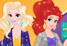 If you thought that this awesome game day is over, and that we have ended today's batch of games presentation, then you couldn't be more wrong, as our team has prepared for you, girls, a lot of more new amazing games. It's a wonderful weekend night for the two best friends and college roommates, Ariel and Elsa, the most beautiful Disney princesses, and most certainly, your favorites. Ariel and Elsa decided to go out tonight, have some fun, dance a little. When they want to go out, they need a full makeover, so, you girls will have to start with their make up and then you go to choosing the perfect outfit. You will first to this for the main character from Little Mermaid, Ariel, and after that, you will have to do the exact same thing for beautiful Elsa. Let's see what ideas you girls have, for these two princesses to look amazing tonight at the club. Have fun!