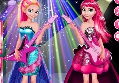 Elsa and Anna are simply the best, you have the chance to play with them and to have an amazing time everytime you do that and we are sure you are going to love playing with them because they always offer you the chance to play some seriously fun games which we hope you will be excited to try out because we think they realy ae the best. This time the two princess girls want to be a part ot the Rock n Royals Barbie story and that means that it is not enough for them to go and sing with their Rock n Royals Barbie friends, they also have to dress up in their specific style which you should realy know if you are a fan of the lovely Barbie story with which we realy give you a lot of fun games. So come and dress up the two Disney princesses, Anna and Elsa in order to look like the Rock n Royals Barbies, we are sure you are going to have a lot of fun together and the two girls just can’t wait to see how you will manage. Good luck!