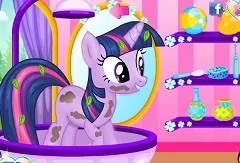 We move further with the games for today and bring you another new game with one of your friends from the serie My Little Pony. The administrative team of games-kids.com is trying really hard to make you happy by offering you the best online game with your friends and for today one of those games is with Twilight Sparkle. Thegame that we have for you next is a caring and creativity game, a makeover game that we wants you to play with us as always. The game has three stages. In the fisrt stage you need to bath Twilight Sparkle following the instructions given by the games. In the secod stage you need to choose a make up for her using all the make up tools offered. In the last stage that the game has for you, you need to choose for her an outfit and to accesorize her as you want. Twilight Sparkle is getting ready to go to a party tonight in Ponyville and she is sure that you will choose only what is best for her. Have fun with Twilight Sparkle in this new and beautiful online game!