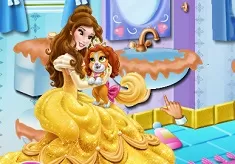 It's time to move on with today's new batch of games, as some of your favorite cartoon characters just can't wait to play more new games with you, games in which you will be able to play so many fun activities with the best characters of our site games-kids.com. Recently, we have uploaded this new amazing game with Belle, the princess from Beauty and the Beast Disney cartoons. Belle has a lot of pets, which she has offered shelter for, at her palace, but they are always making such a mess, in the whole house, and today, she has grounded them and now they have to cleanup the palace. What do you say, girls, shall we help them? Great! What you need to do, is to help the pets and Belle as well, to clean up the whole bathroom, as fast as possible, as they have a whole castle to clean.Enjoy, girls!