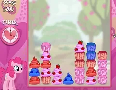 We have to move forward with the games, because we want to bring you games with all of your favourite characters. The next game that we chosed to offer is a game with onethe the characters from My Little Pony, a game with the fun loving Pinkie Pie. As you all know, Pinkie Pie love sweets and to make them, as she has a huge imagination and uses it to create to most delicios sweets. The new game that we have to offer is a creative game in which you have to help Pinkie Pie with her cupcake maker. Pinkie Pie loves cupcakes and she made a cupcake maker to make them faster and serve them in her shop. In this new game you have to help her match the correct color of frosting with the matching cakes to create the most incredible combination of cupcakes and to ger points. You have to math the frosting top to the same color of cupcake bottom by dragging the frost to the cupcake. Pay attencion because if you let the cupcake pieces stack up to high, they will start to flash and if they do it for too long the game will be over. Have fun in this new game with Pinkie Pie!